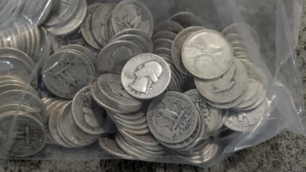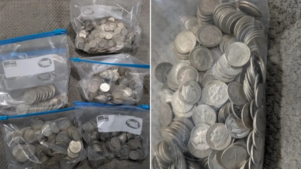 Коли контейнер розкрили, стало зрозуміло, що це справжня таємна схованка. Усередині були пакети зі срібними монетами різних номіналів. Серед них були десятицентові монети, чверті долара та півдоларові монети, виготовлені зі срібла високої якості.