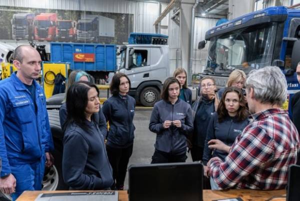 Нещодавно, дванадцятого грудня, на станції Scania в Калинівці завершила навчання остання у 2025 році група автомеханікинь. Це була експериментальна група курсу «Автомеханікиня. Електрообладнання» – новий освітній модуль, орієнтований на підготовку спеціалісток для праці з електрифікованими та гібридними вантажівками.