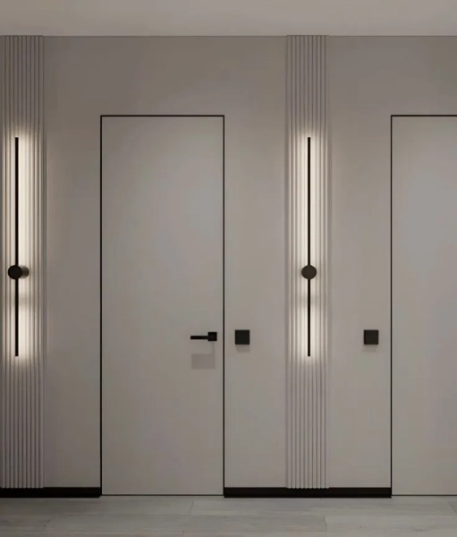 Ще один популярний варіант – двері, пофарбовані в той самий колір, що й стіни. Це створює ефект цілісності, візуально збільшує простір і підходить для сучасних мінімалістичних квартир.