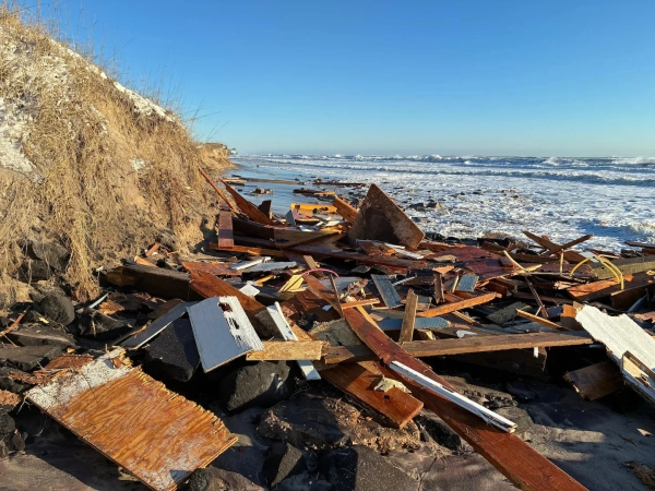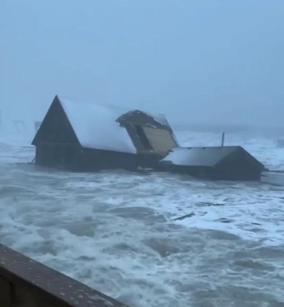 Буревій приніс на берег сильний вітер, вологий сніг і високі хвилі, які безперервно вдаряли по пляжу. Вода розмила ґрунт під палями, на яких стояли будівлі, як пише The Washington Post.