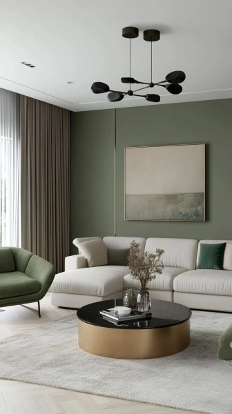 Оливково-зелений додає інтер’єру природної атмосфери і підходить навіть для кухні або передпокою.