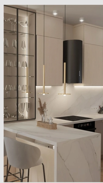 - Стільниці з порцеляни поєднують в собі красу природного каменю з функціональністю, вирізняються високою зносостійкістю та жароміцністю.