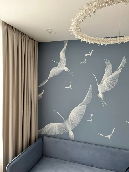 - Пташині мотиви привносять в інтер’єр особливість, легкість і символізм, гармонійно поєднуючись зі стриманими матеріалами та приглушеними відтінками.
