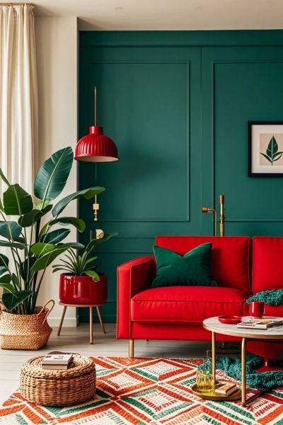 Яскраво-зелений та вогненно-червоний в інтер’єрі / Фото Pinterest