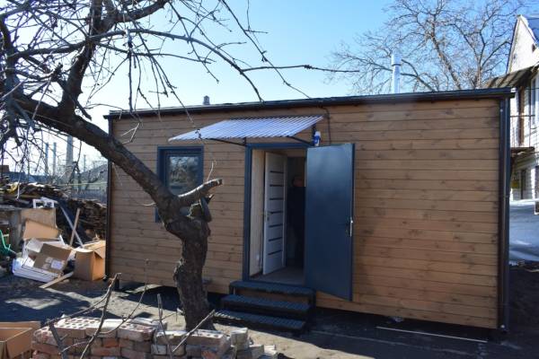 Тимчасове помешкання площею 30 м², забезпечене усім потрібним обладнанням (тут є електроопалення, плита, холодильник, пральна машина, кондиціонер, сантехніка), залишиться у власності родин і після повного відновлення їхніх домівок.