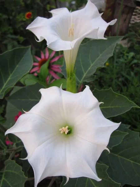 Датура (дурман) має незвичайні великі квітки, але є однією з найбільш небезпечних декоративних рослин. Її запах може спричинити сонливість і головний біль, а хімічні сполуки у складі є сильно отруйними. Через це її не радять висаджувати поблизу житлових споруд або зон відпочинку.