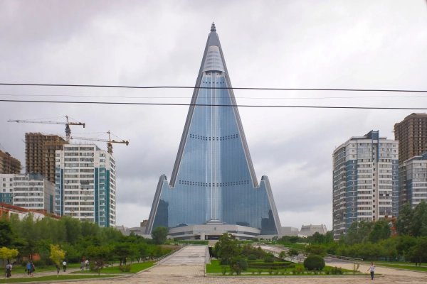 Готель “Рюгьон” у Пхеньяні вже давно став символічним втіленням нереалізованих амбіцій. Незважаючи на те, що будівлю так і не було введено в експлуатацію, вона вже багато років формує міський пейзаж.