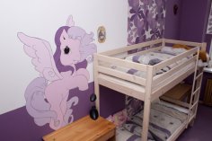 Наповнення стелажу згодом змінюватиметься, замість іграшок на ньому з'являться підручники та декоративні елементи. Подібне рішення дозволяє заощадити вільний простір у приміщенні та з найбільшою ефективністю використовувати площу навіть у малогабаритній кімнаті.
